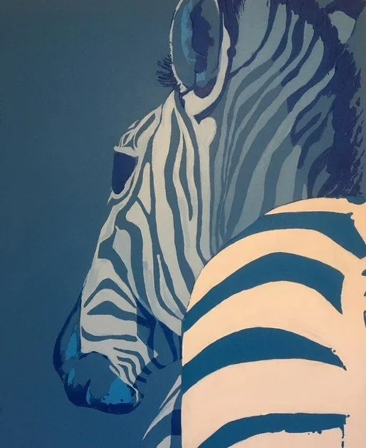 Blue Zebra: The Skin I Am In, 36 x 30 Acrylic on Canvas using a Palette Knife