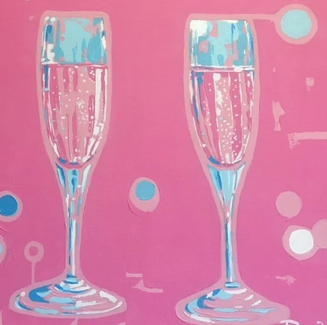 Cheers: Pink Champagne 18 x 18 Acrylic on Canvas using a Palette Knife