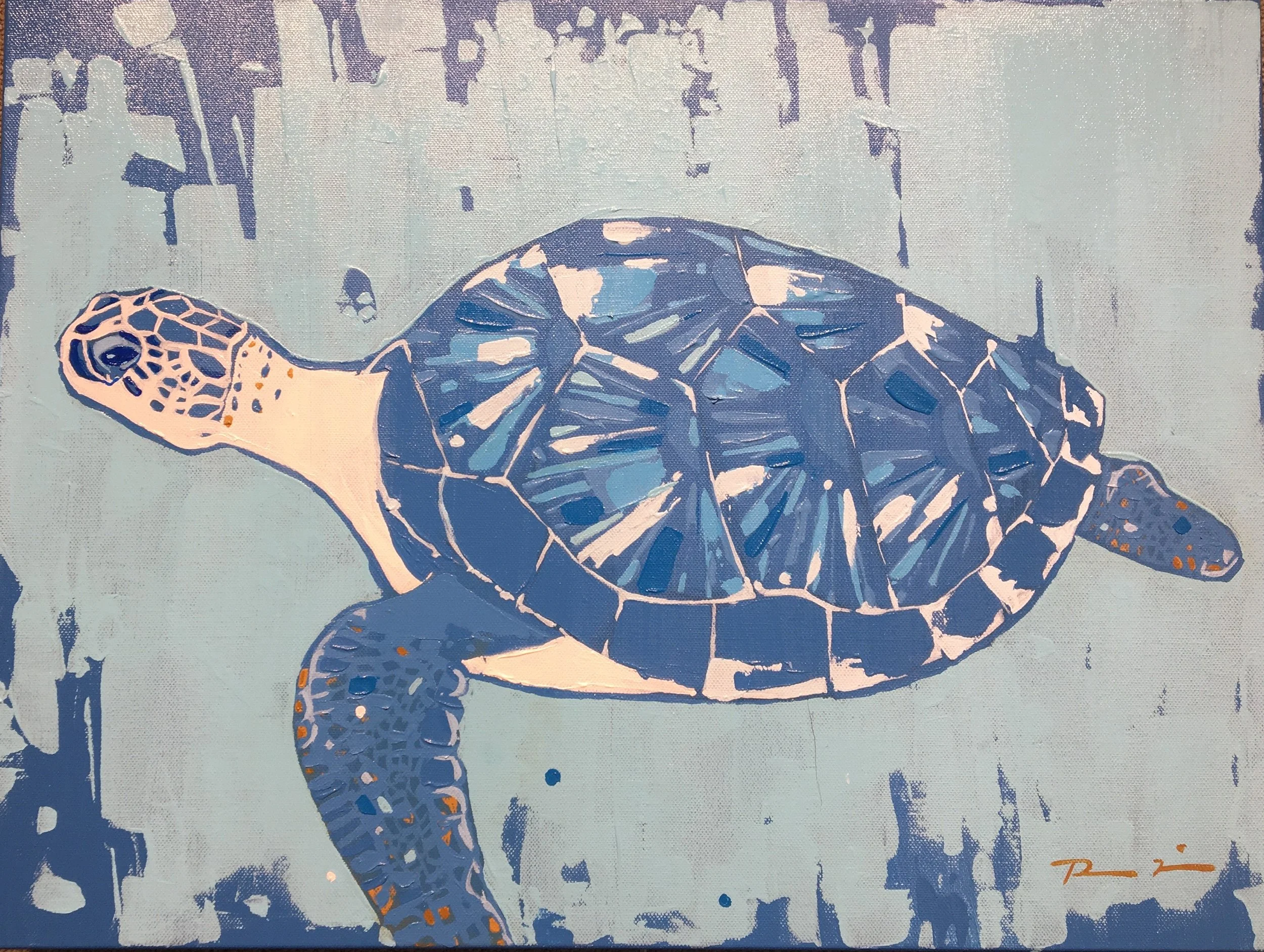 SOLD Sea Turtle, 24 x 18 Acrylic on Canvas using a Palette Knife